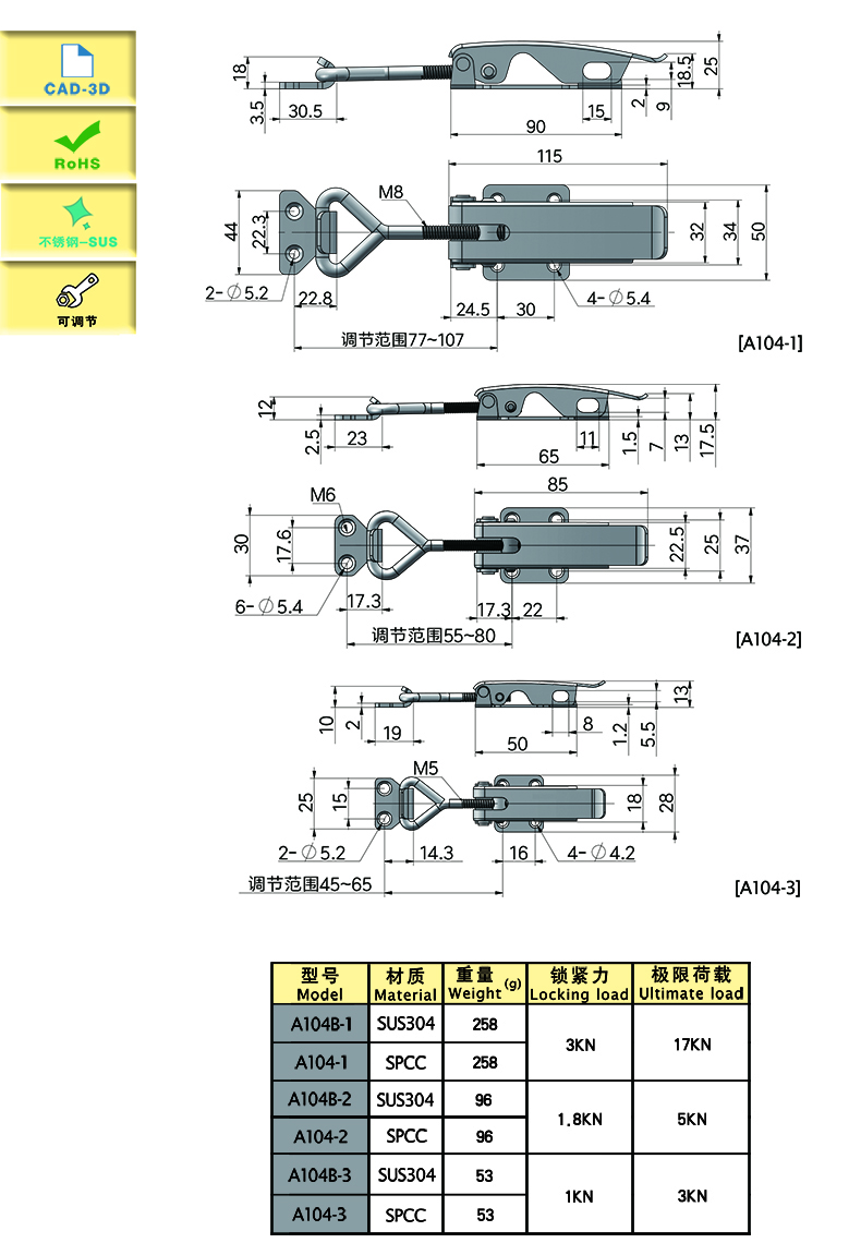 | A104-3 | adjustable | 120 | spcc | 53.03 | 1000 | Download |