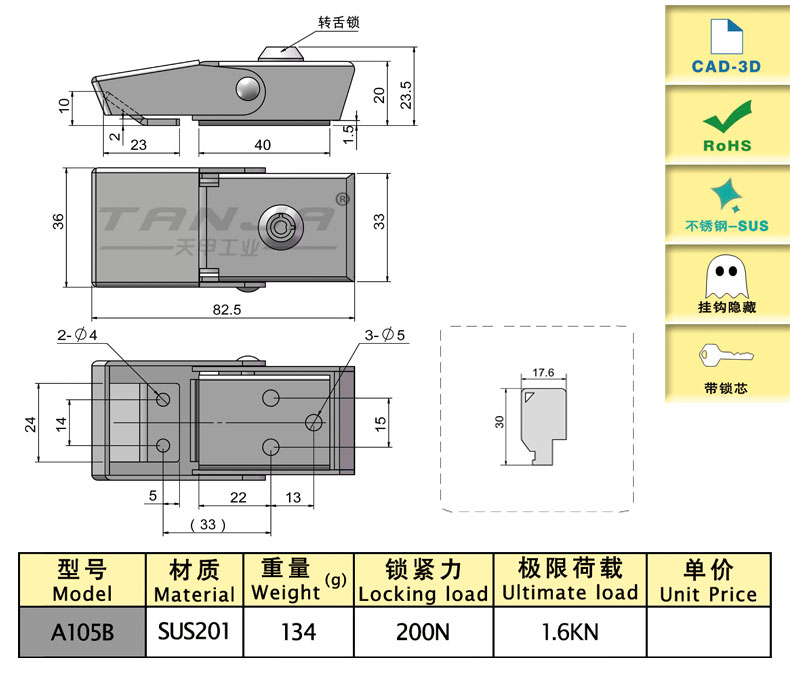 Equipped with lock cylinder and matching key, with anti-theft function and security