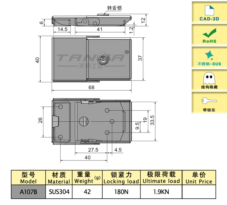 | A107B | concealed,with lock | 67.9 | sus304 | 42.01 | 180 | Download |