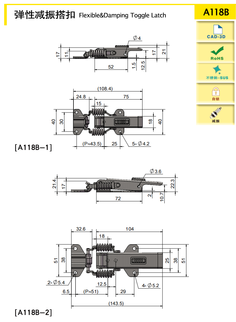 | A118B-1 | damping,self lock | 108 | sus304 | 89.01 | 100/200/350 | 2800 | Download |