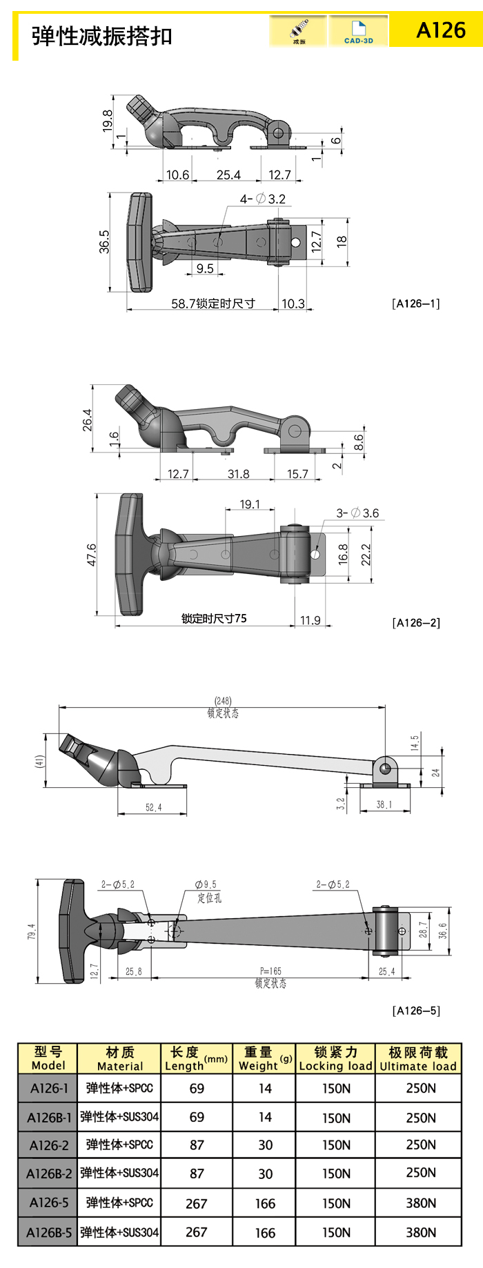 | model | function | Length (mm) | material quality | Weight (g) | Locking force (N) | 3D |