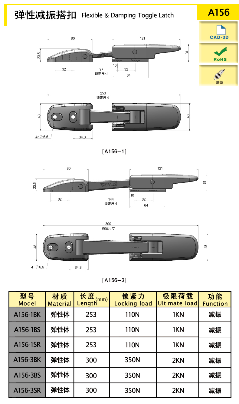 | model | function | Length (mm) | material quality | Weight (g) | Locking force (N) | Ultimate load (N) | 3D |