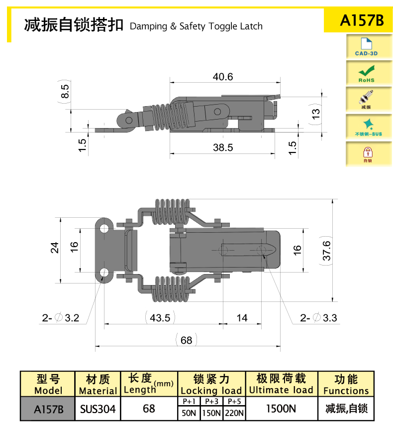 | model | function | Length (mm) | material quality | Weight (g) | Locking force (N) | Ultimate load (N) | 3D |