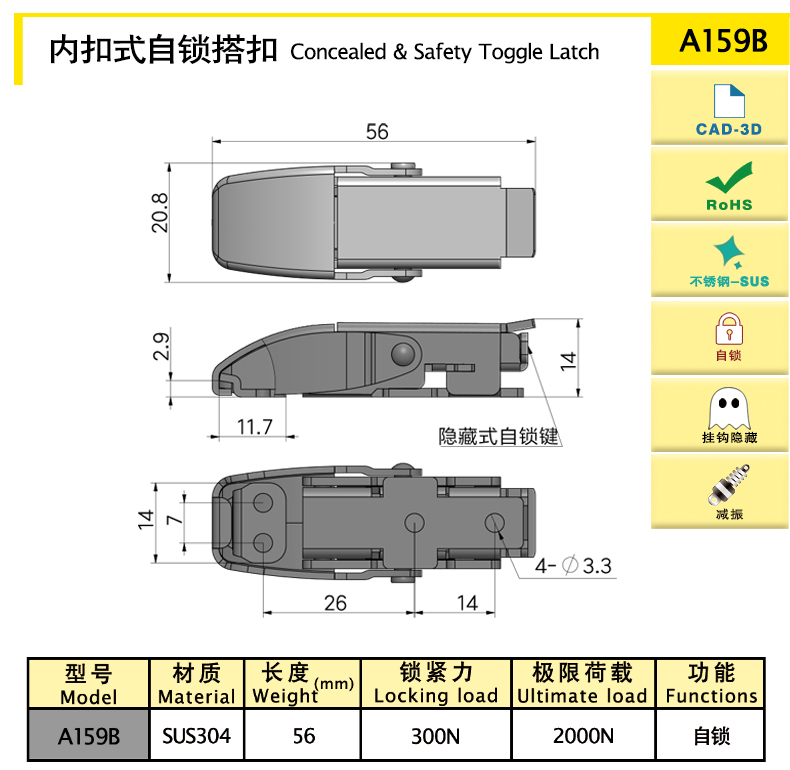Inner toggle latch elastic toggle latch