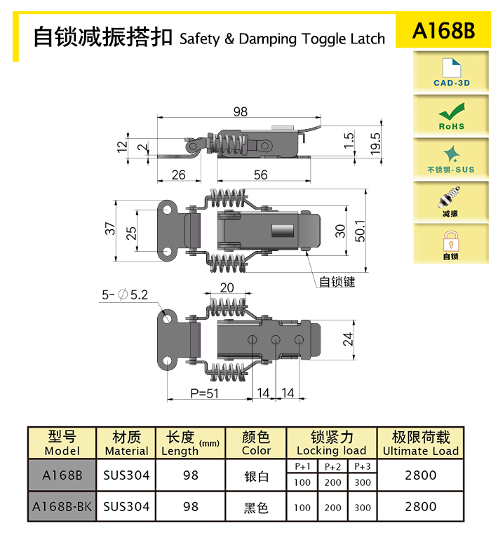 Vibration damping self-locking toggle latch