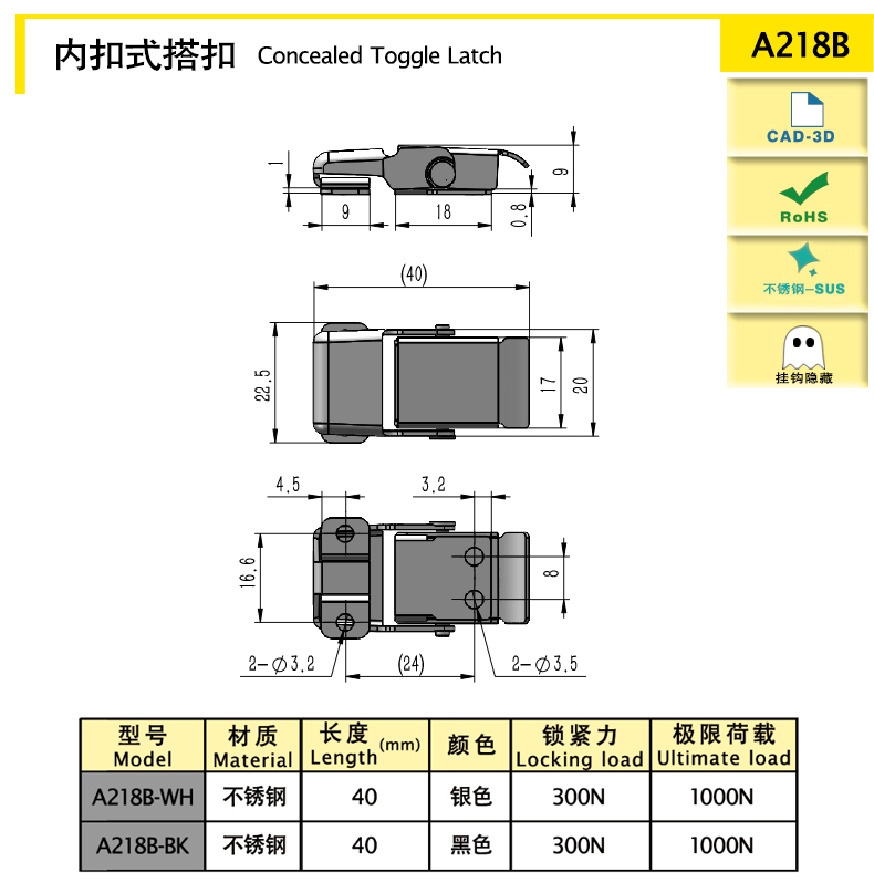 A218B1-BK concealed 40 sus201 13.32 300 Download