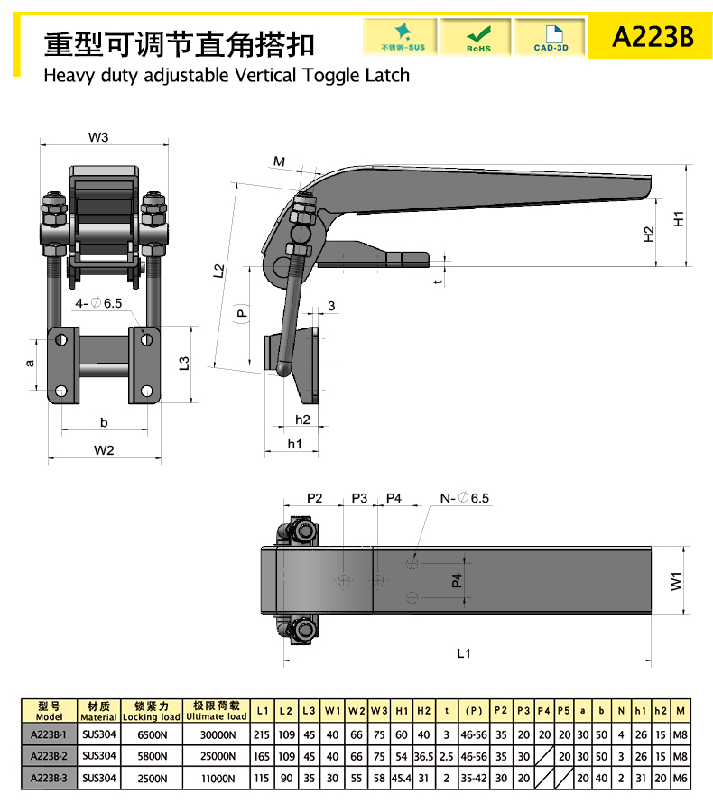 Heavy duty adjustable toggle latch