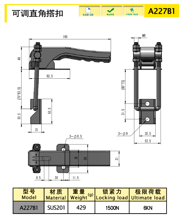 Adjustable right angle toggle latch