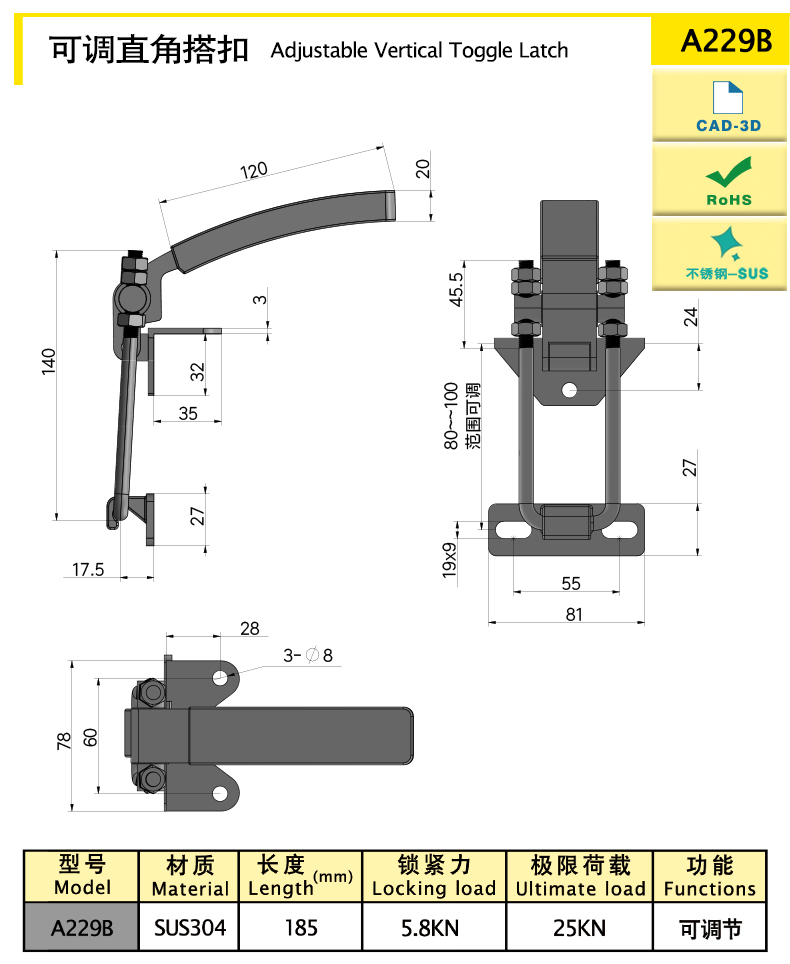 90 degree vertical installation structure is simple and easy to useAdjustable screw length for easy adjustment of installation hole spacingInstallation: Both front and side can be installed