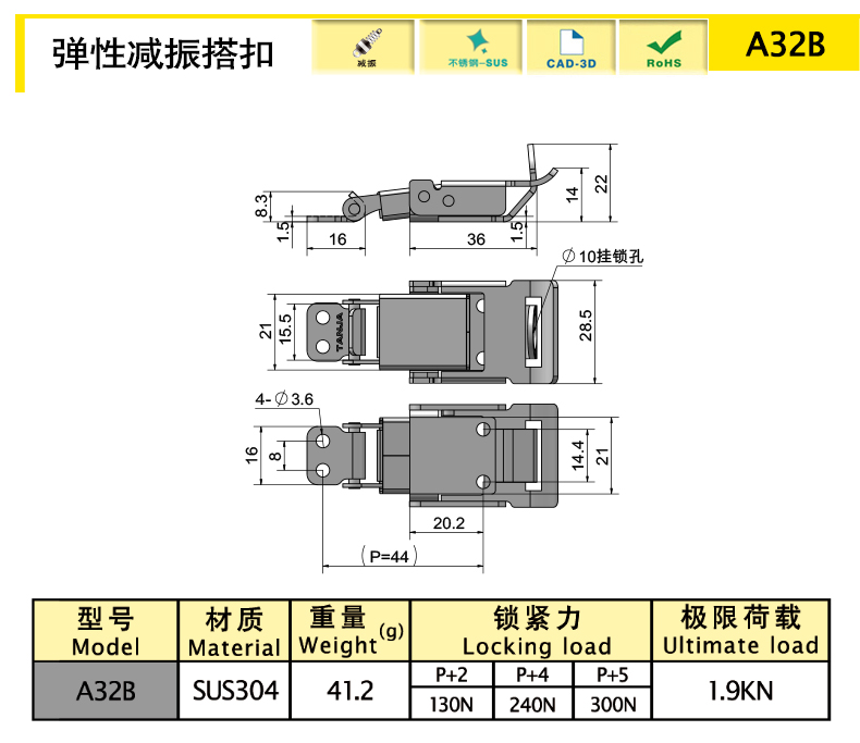 | A32B | damping,with lock | 69.4 | sus304 | 41.21 | 130 | 1900 | Download |