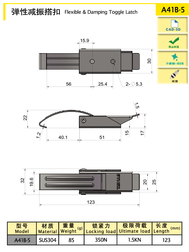 model function Length (mm) material quality Weight (g) Locking force (N) 3D