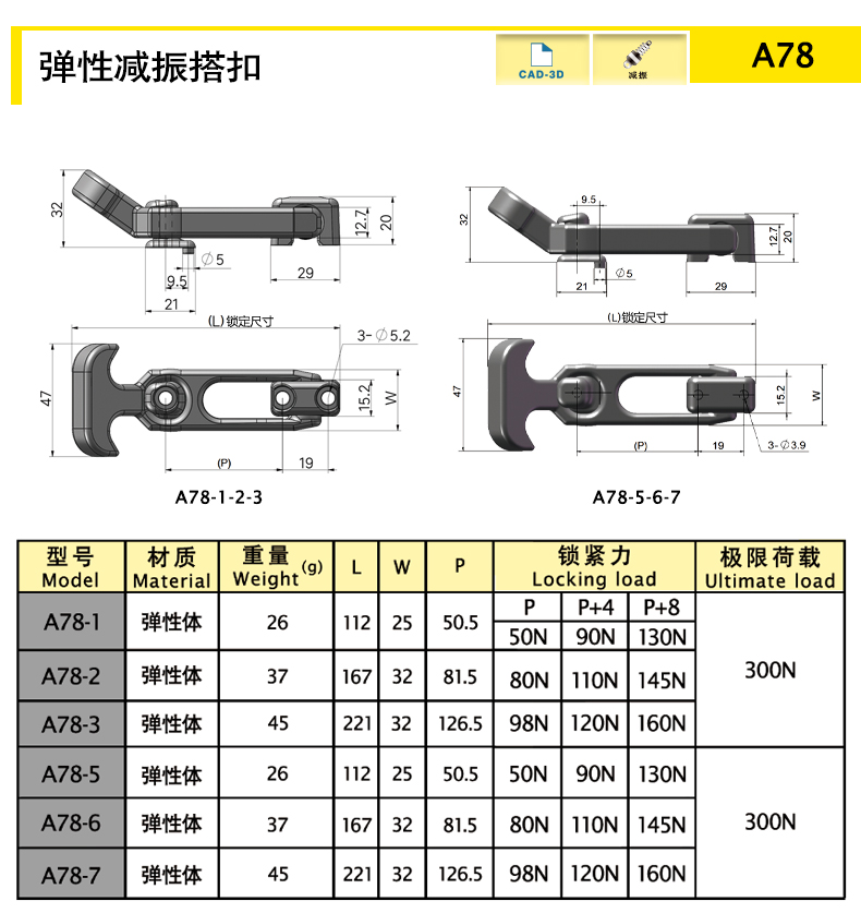 | model | function | Length (mm) | material quality | Weight (g) | Ultimate load (N) | 3D |
