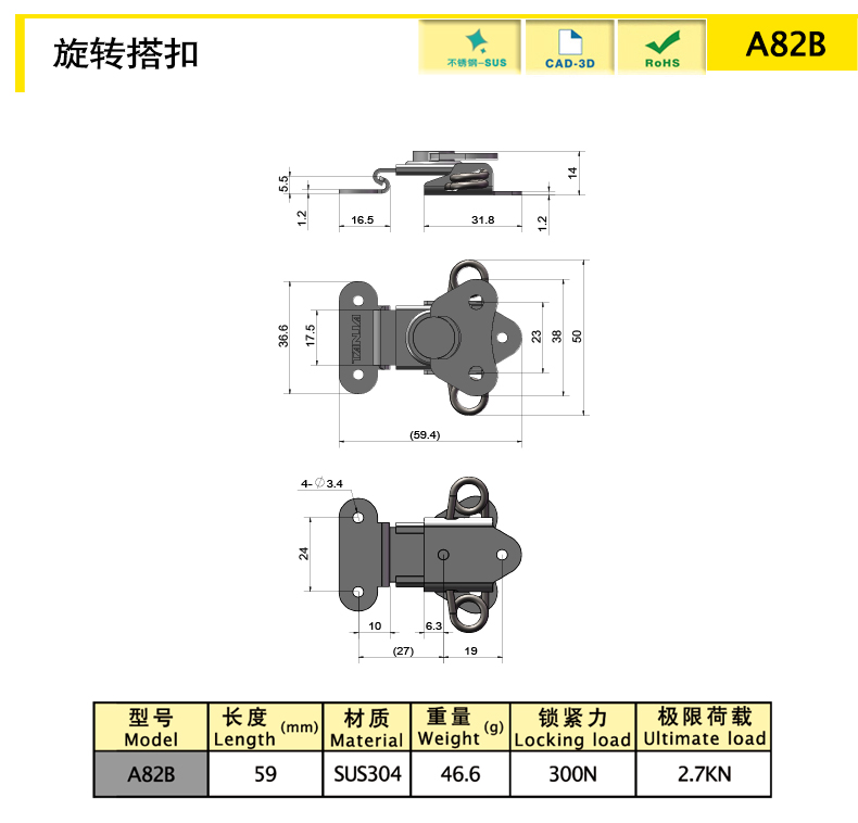 | model | function | Length (mm) | material quality | Weight (g) | Locking force (N) | 3D |