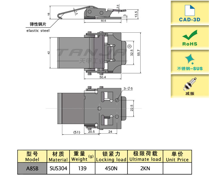 | model | function | Length (mm) | material quality | Weight (g) | Locking force (N) | 3D |