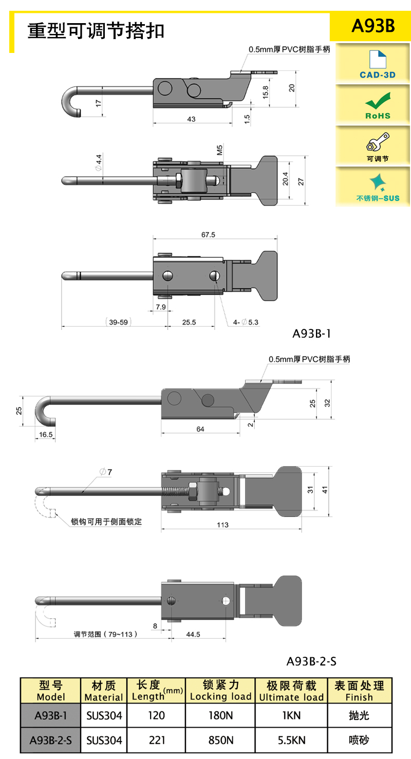 Heavy duty adjustable toggle latch