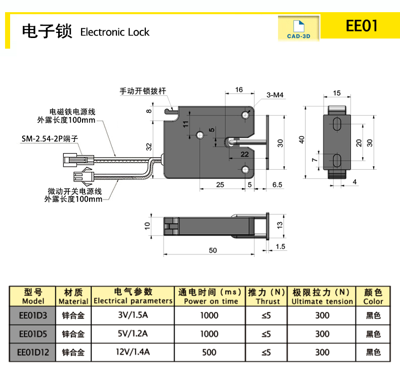 | EE01D3 | electronic lock | zinc alloy | black | none | electrophoresis | 60.91 | Download |