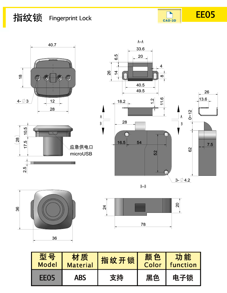 | EE05 | electronic lock | abs | black | none | 156 | Download |