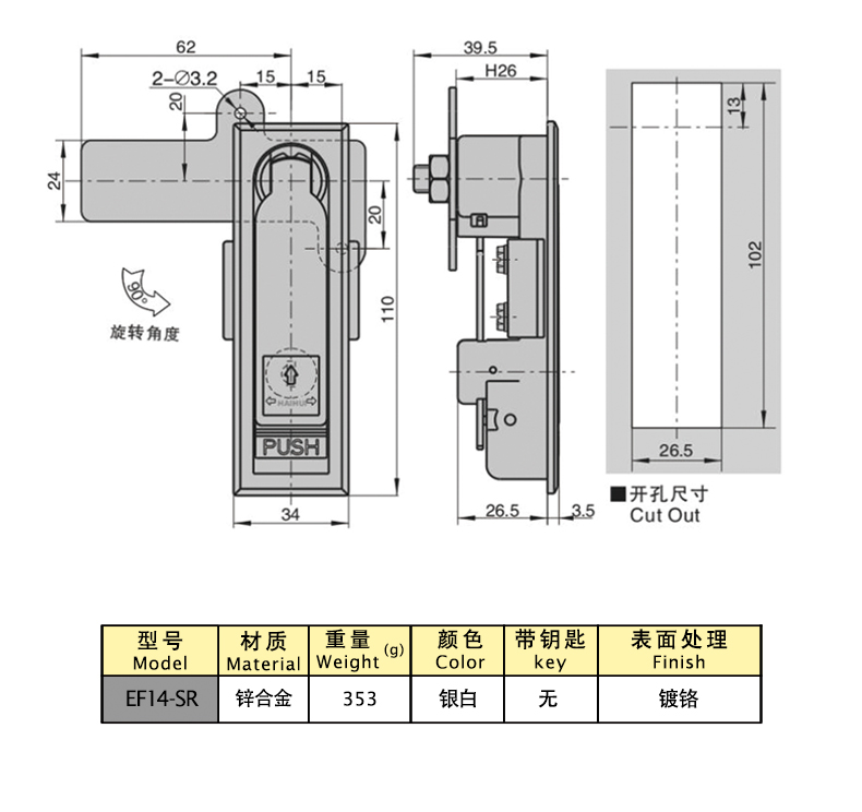 Structural function: locked by the key, the handle automatically pops up and rotates to open when pressed, and the position of the lock plate can be swapped to be universal on both sides
