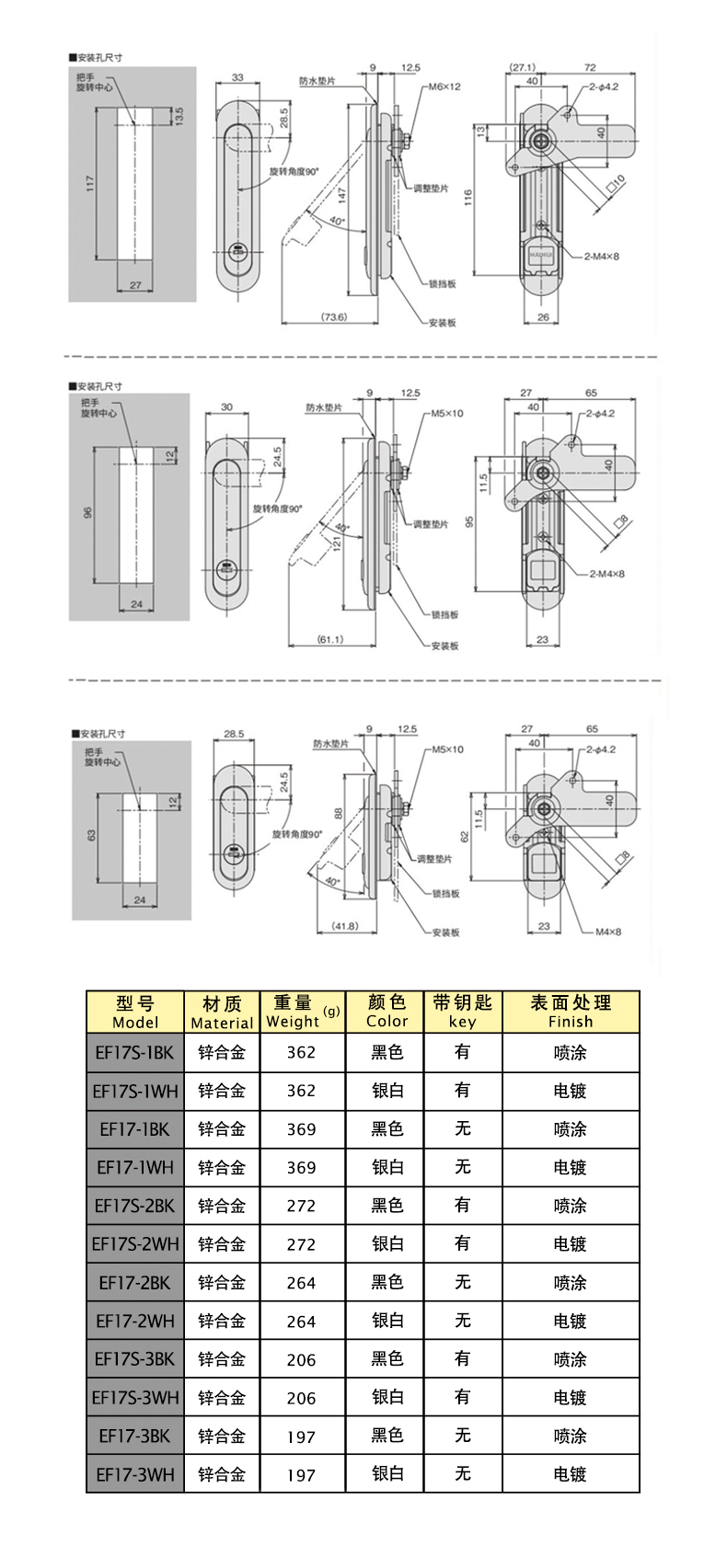 | EF17-3SR | flat lock | zinc alloy | 88 | none | electroplating | 1 | Download |