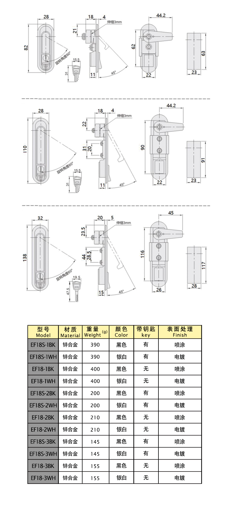 | EF18-2SR | flat lock | zinc alloy | 110 | none | electroplating | 1 | Download |
