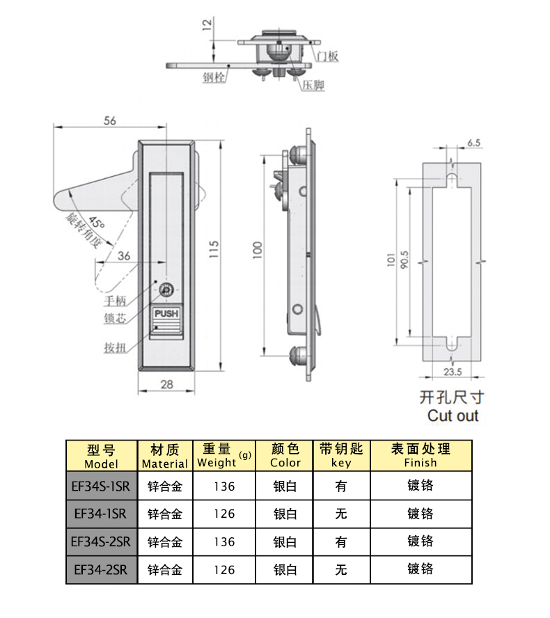 | EF34-1SR | zinc alloy | 115 | silver white | none | chromium plating | 1 | Download |