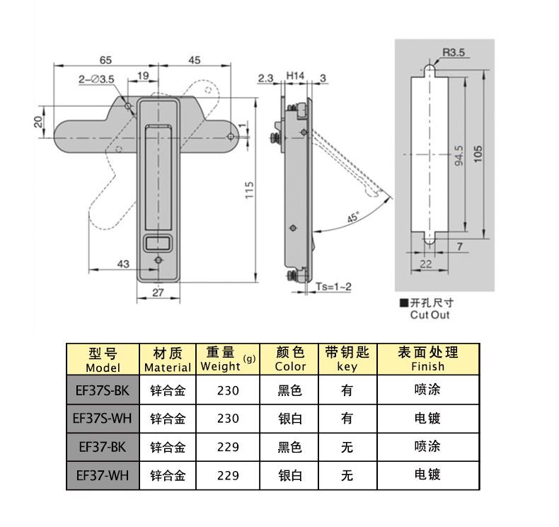 | EF37-S-BK | zinc alloy | 115 | black | yes | spray coating | 1 | Download |
