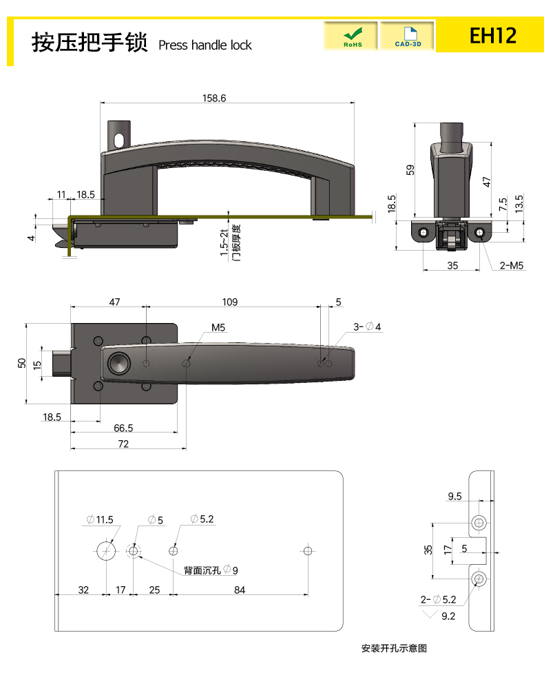 Assist in locking, lock when the door is closed; Press the button to unlock and lock
