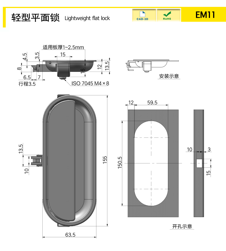 EM11 flat lock aluminum alloy 155 silvery white / Download