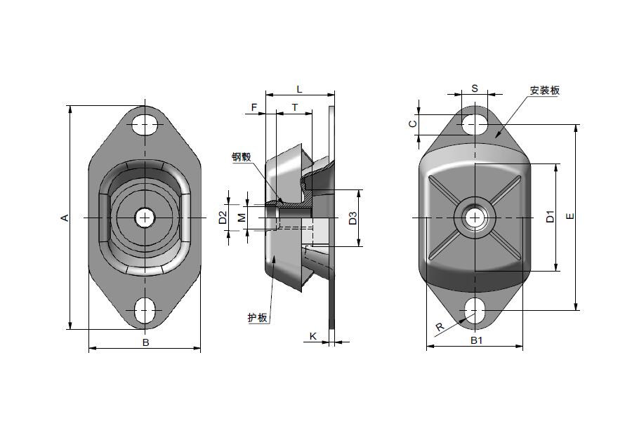 The internal natural rubber is bonded with metal parts for better shock absorption effect.