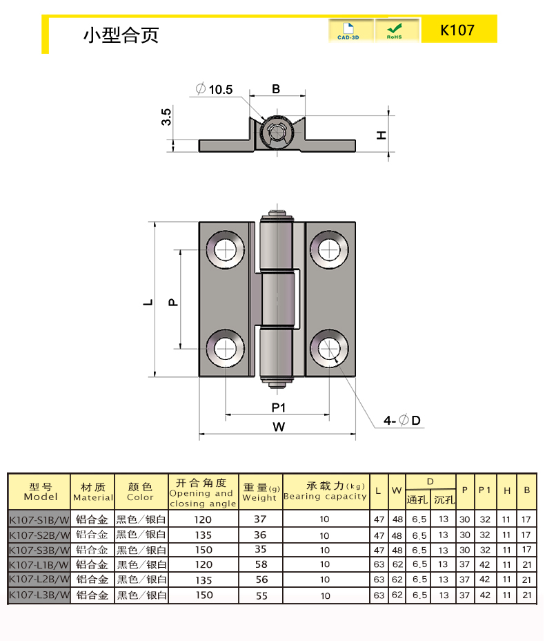 | K107-2-3BK | aluminum alloy | 63 | black,silver white | 36 | light damping | Download |