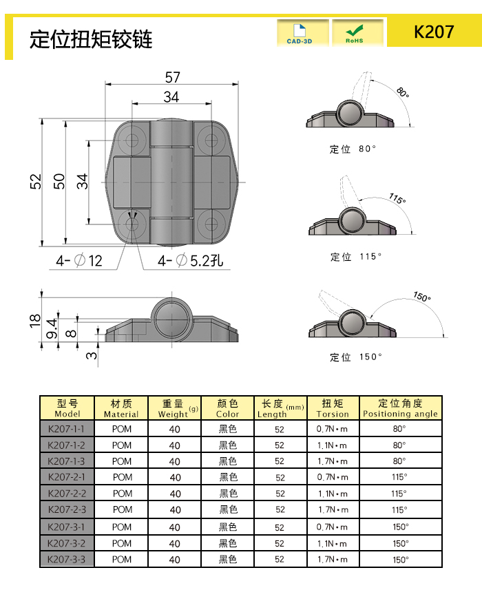 | K207-3-2-BK | pom | 52 | black | 38.41 | fixed torque,angle positioning | Download |