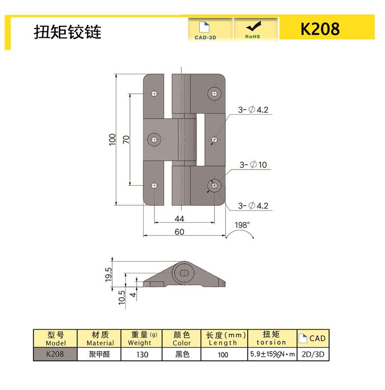Operating torque under load in the direction of lid closureNo load torque in the direction of opening the cover