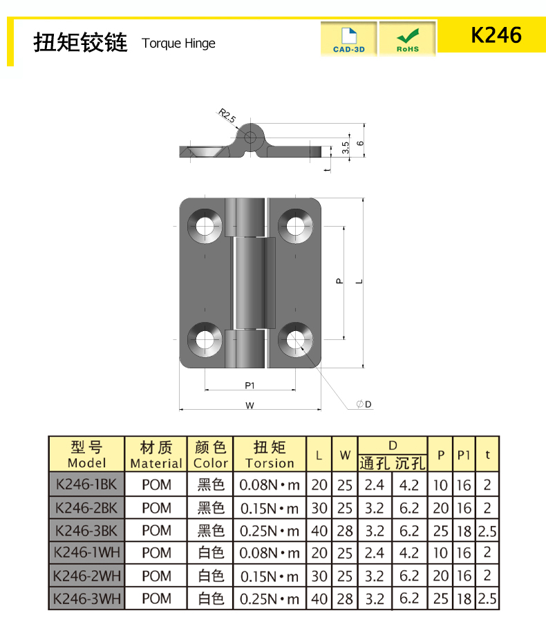 | K246-3WH | pom | 40 | white | 4.71 | fixed torque | Download |