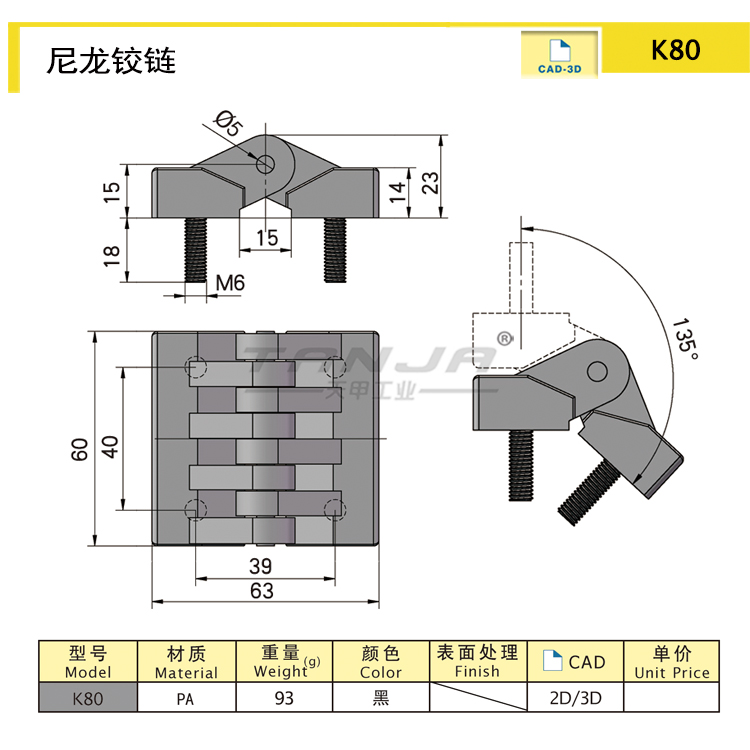 Nylon hinge