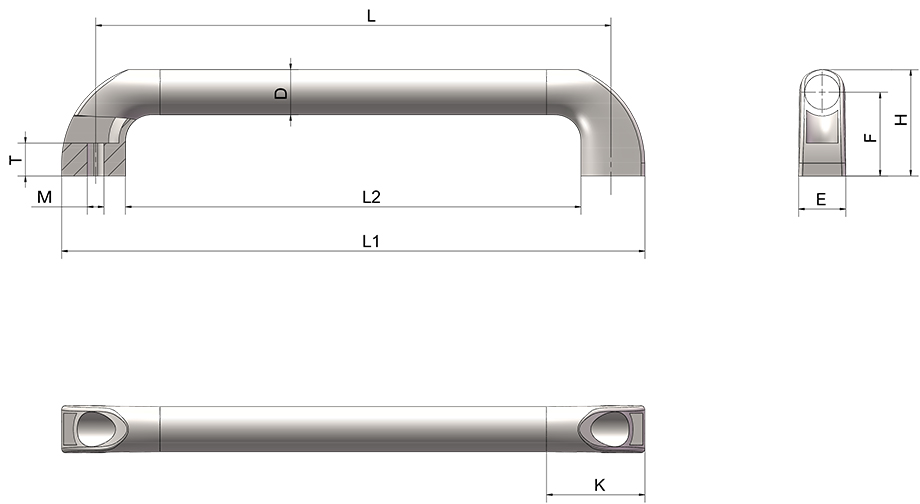 | model | material quality | Tube body | Supporting feet | Cover plate | Weight (g) | Length L | D | L1 | L2 | F | E | M | T | K | 3D |