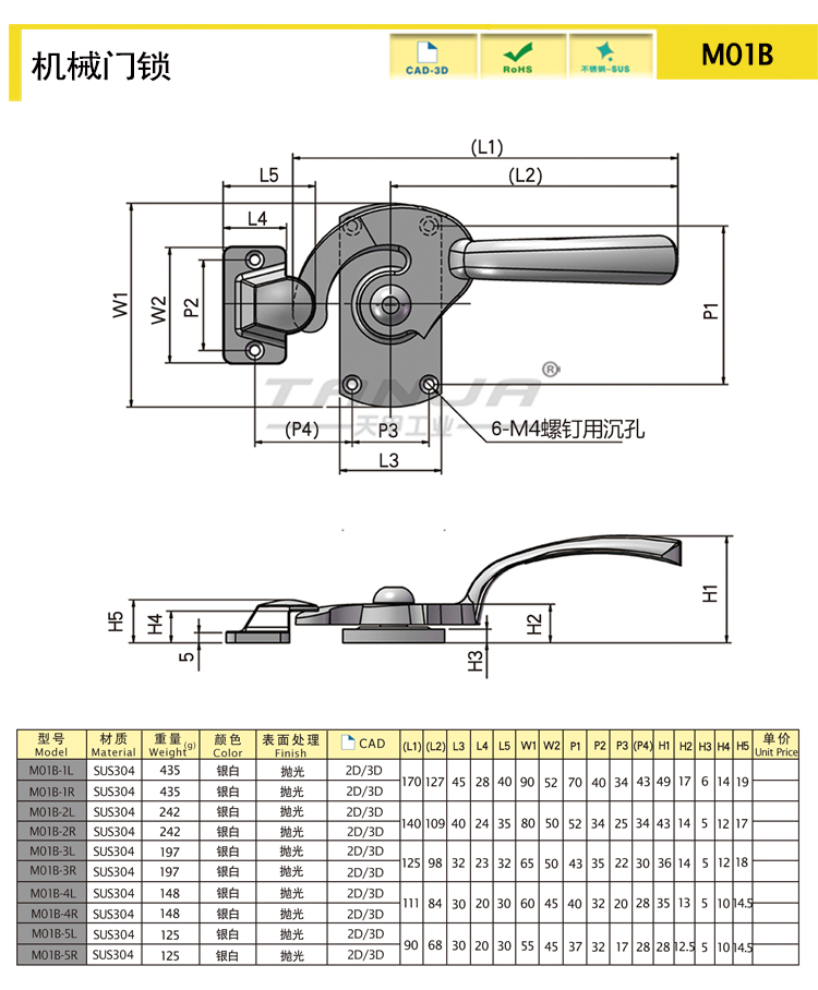 | M01B-3R | handle lock | sus304 | polishing | 220.03 | Download |