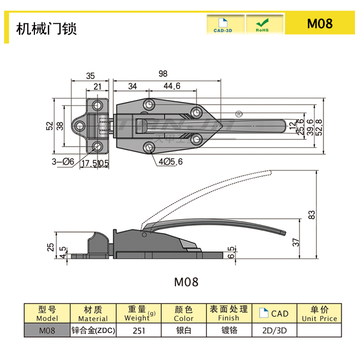 The locking tongue is a roller structure, which can be opened and closed with one touch operation