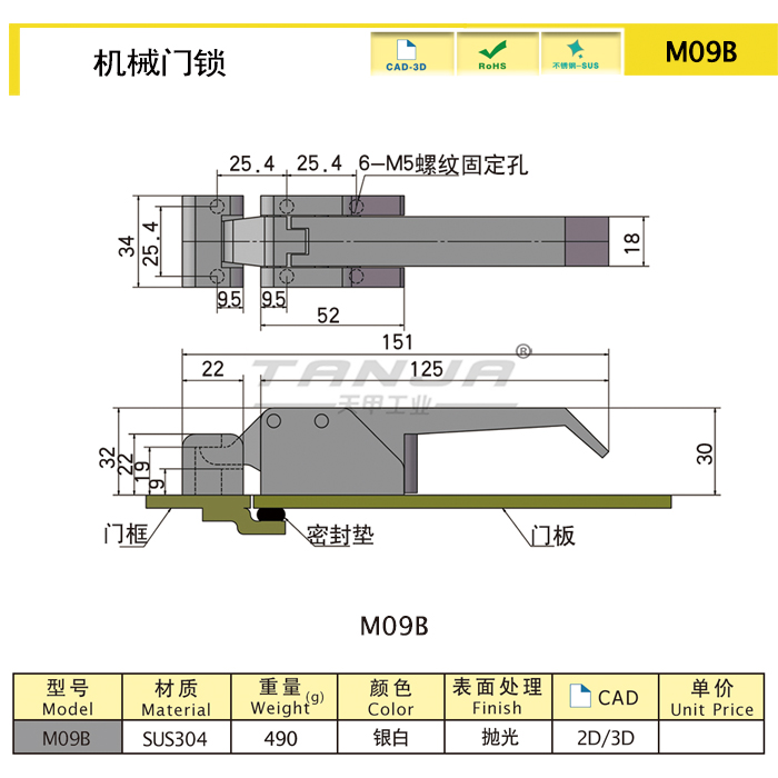 | M09B | handle lock | sus304 | 152 | silver white | polishing | 406.01 | Download |
