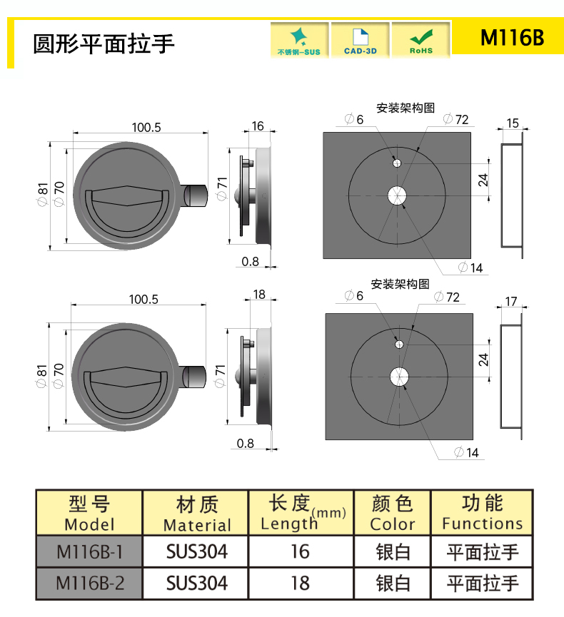 1. Left and right compatible (flip the tongue to achieve left and right switching)2. Stainless steel material, hidden circular handle