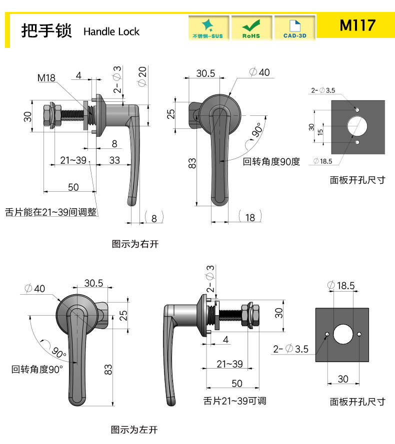 Stainless steel castings, corrosion-resistant, adjustable locking range for left and right universal use
