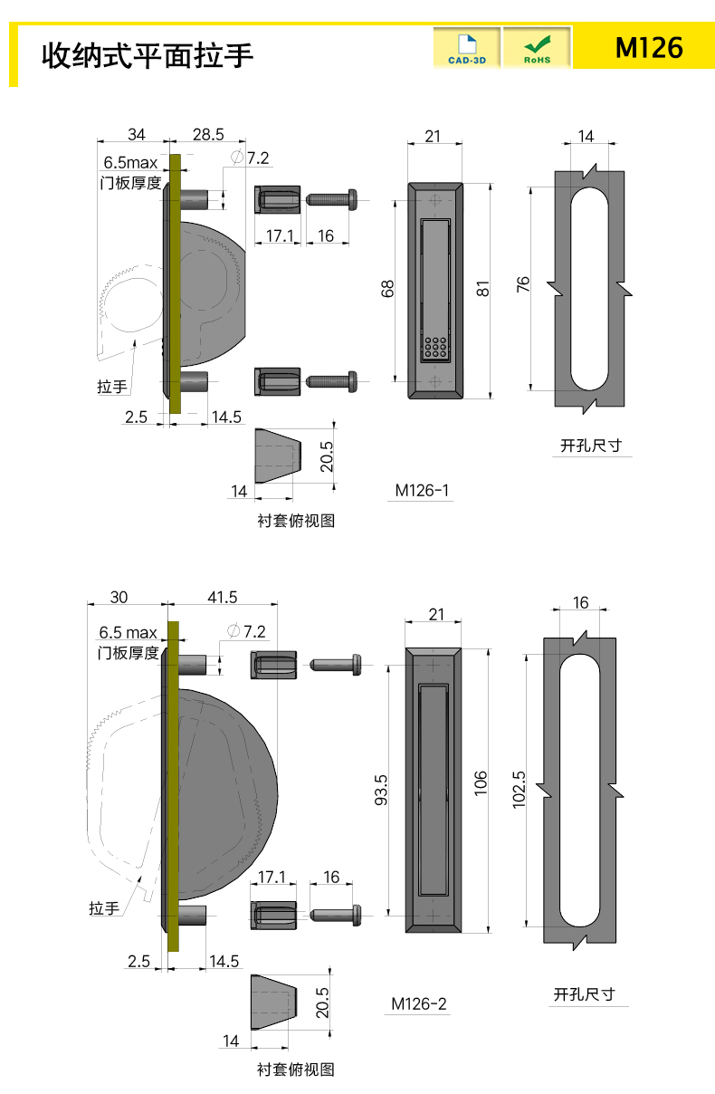 M126-1: ABS, M126-2: ABS+zinc alloy handleEmbedded installation design, press and unscrew when in use after installation, hide when not in use