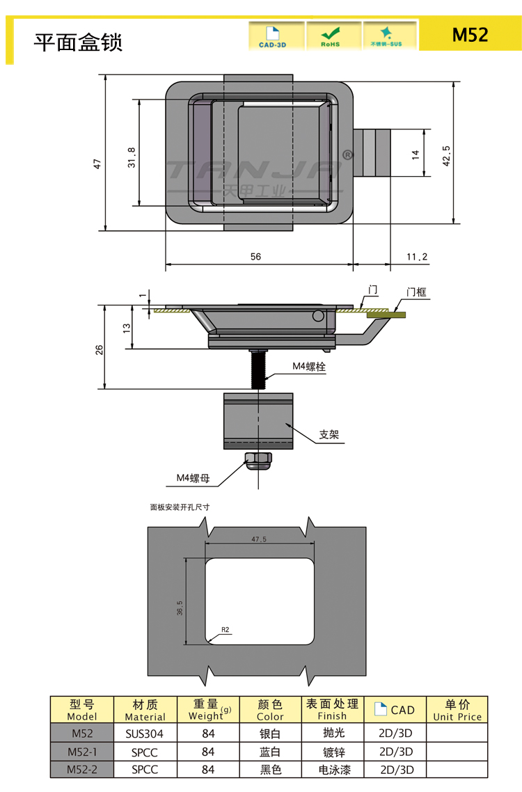 | M52B | flat box lock | sus304 | 67.5 | drawing | 77.51 | Download |