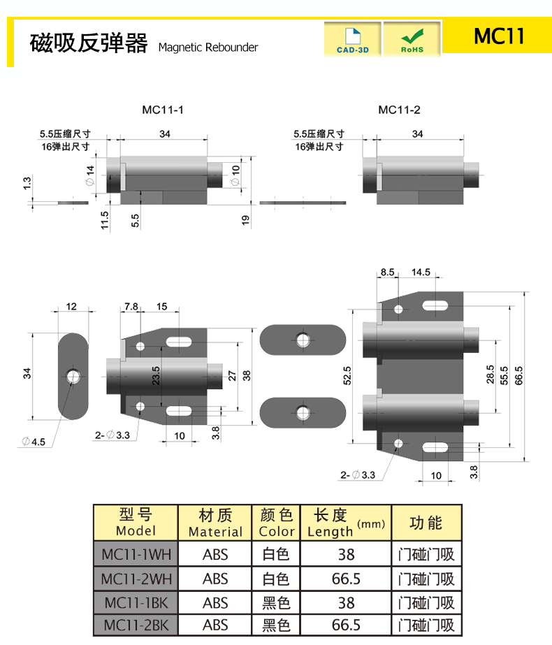 | MC11-1BK | 17.11 | black | 38 | abs | door touch door suction | Download |
