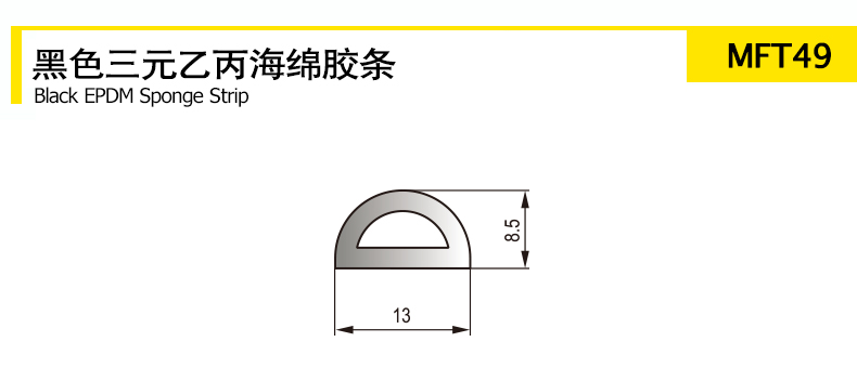 Black EPDM sponge rubber strip