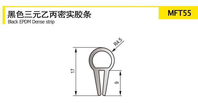 Black EPDM dense rubber strip