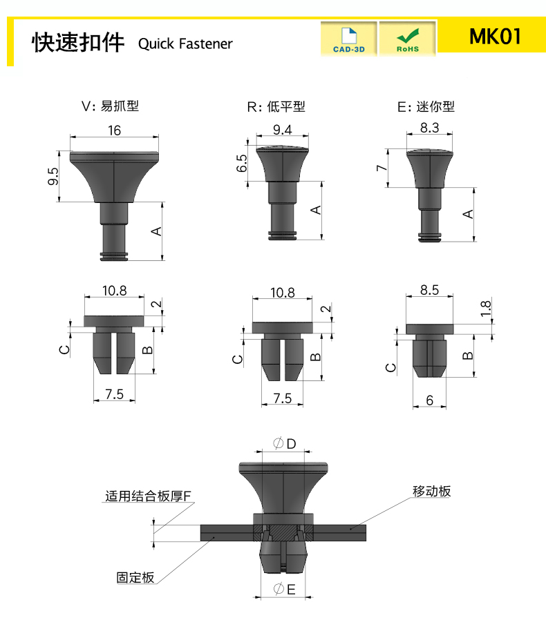 | MK01-E-3BK | 1 | black | nylon66 | low flat type | Download |