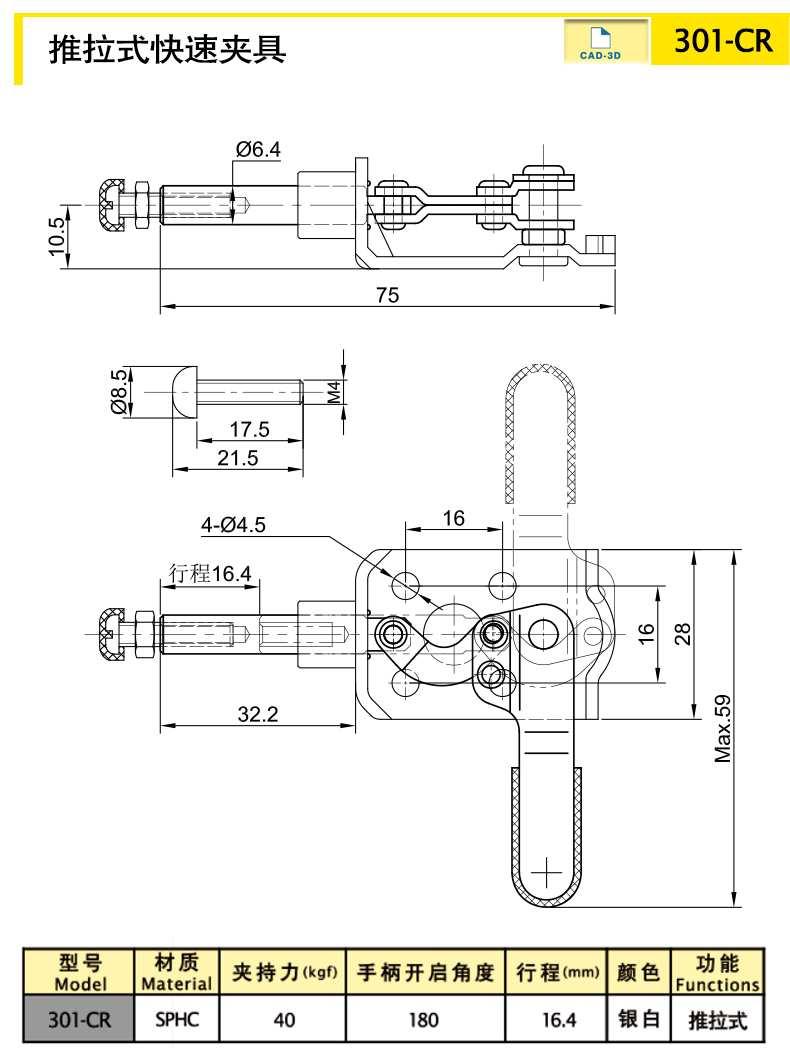 | 301-CR | 58.3 | 40 | push-pull type | sphc | silver white | Download |