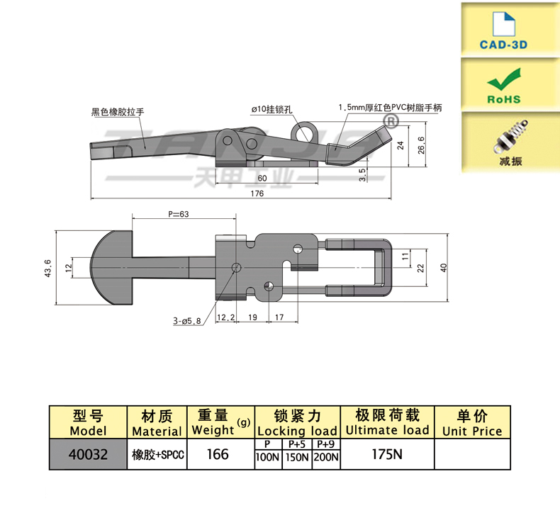 | model | function | Length (mm) | material quality | Weight (g) | Locking force (N) | 3D |