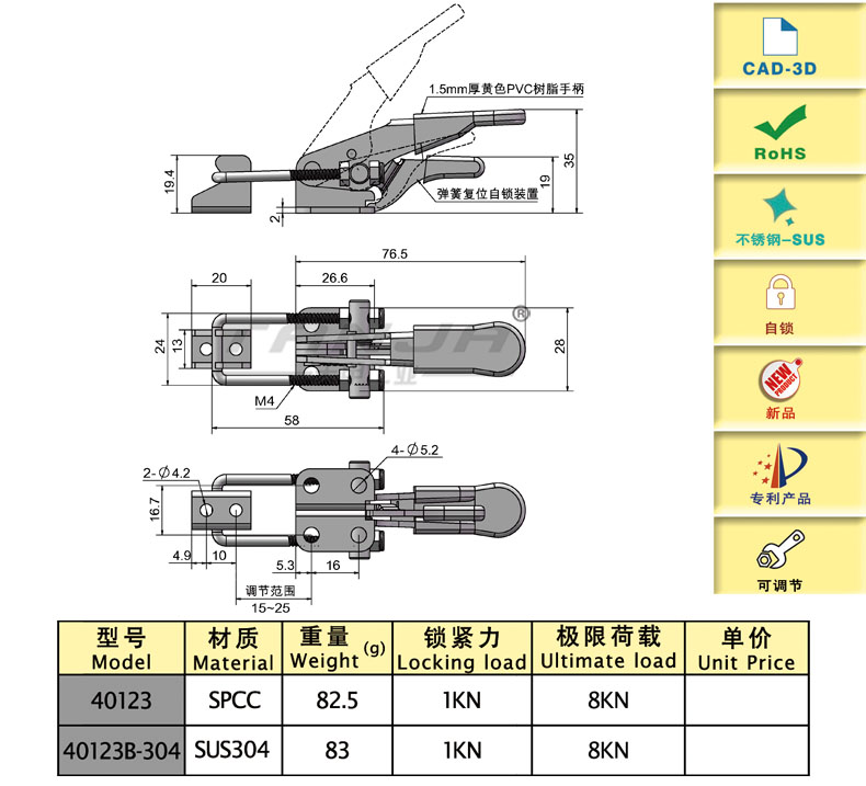 Adjustable self-locking toggle latch
