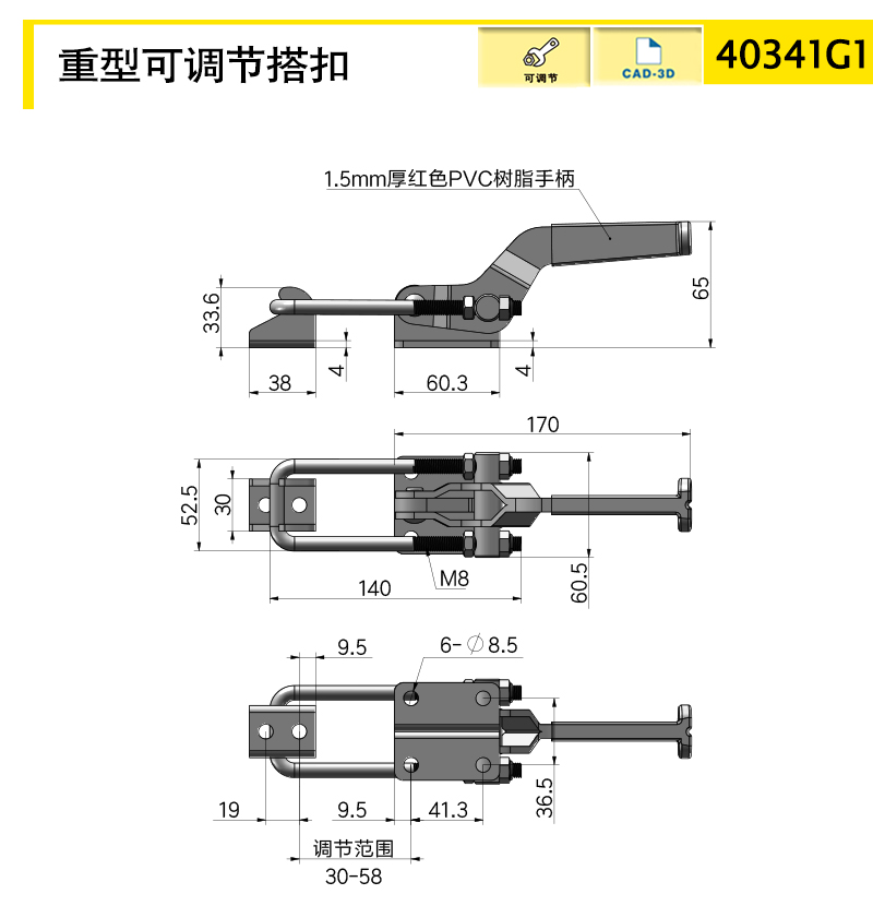 螺杆可调节从而改变安装距和锁紧力;